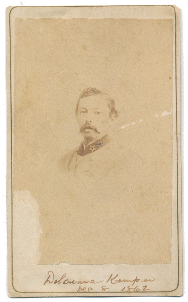 Delaware Kemper was born in 1833 and rose to prominence as captain of the Alexandria Light Artillery, part of Brig. Gen. P. G. T. Beauregard’s short-lived Confederate Army of the Potomac. His battery played a key role in the skirmish at Blackburn’s Ford on July 18, 1861, and again during the First Battle of Bull Run three days later. Stationed on a hilltop overlooking Cub Run, Kemper’s guns shattered the Union retreat when a wagon overturned on the bridge—an action that helped turn withdrawal into the chaotic rout remembered in the Southern press as “The Great Skedaddle.”