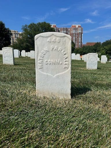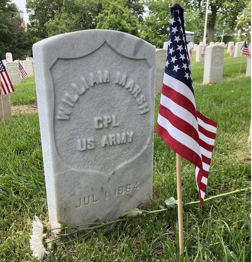 Marsh was admitted to the Grosvenor Branch Hospital (Lee-Fendall House) on May 27, 1864, with a gunshot wound to his left hip. Despite medical efforts, he succumbed to his injuries on July 2, 1864, although his gravestone erroneously states July 1, 1864. This discrepancy between official records and the gravestone inscription serves as a reminder of the challenges in maintaining accurate records during the chaotic times of war. Marsh’s final days in the hospital and his burial in Alexandria National Cemetery reflect the somber realities faced by the thousands of soldiers interred there.